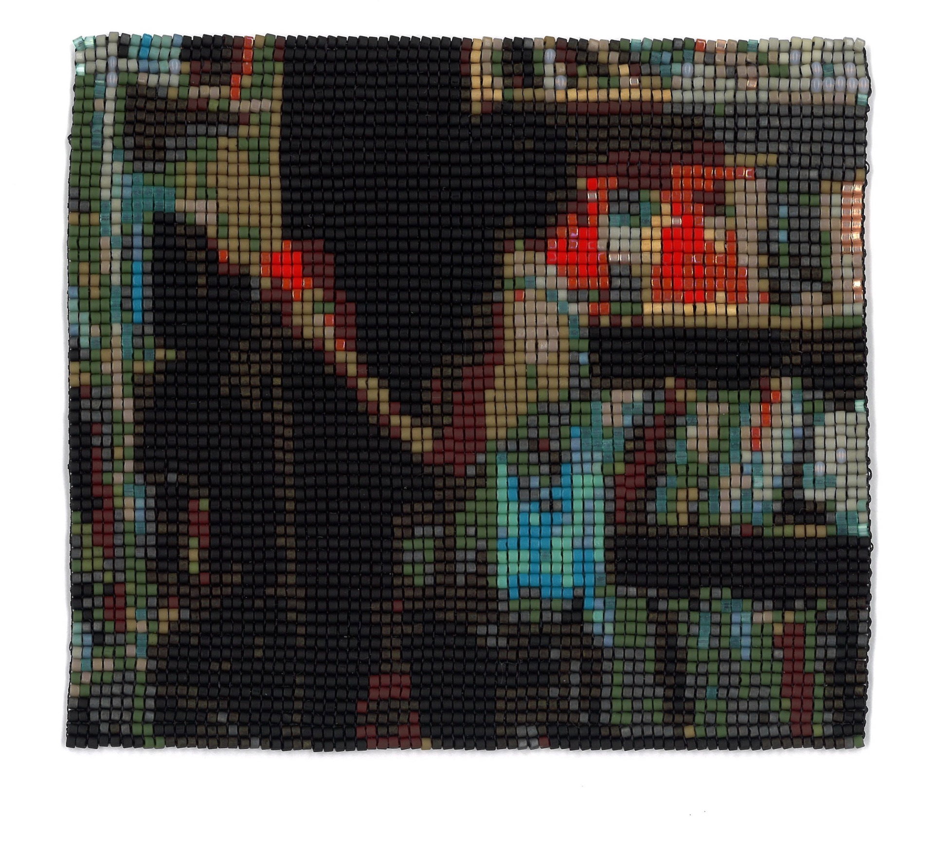 Untitled, 2023, glass beads and acrylic thread, 2.5 x 3.5 in.